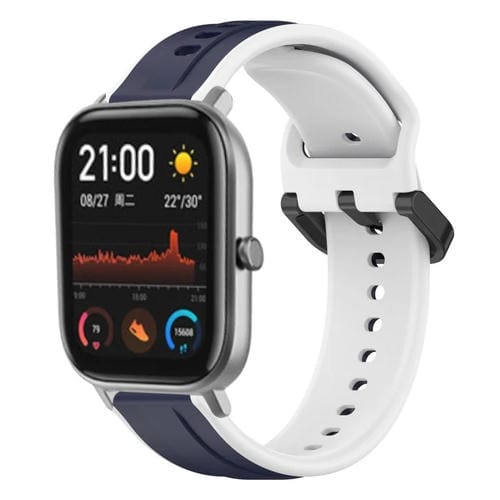 Correa de Silicona para Amazfit GTS 20mm con Bucle Convexo (Azul Medianoche + Blanco)