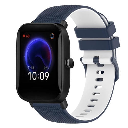 Correa de Reloj para Amazfit Pop 20mm Silicona Dos Colores a Cuadros (Azul Oscuro + Blanco)