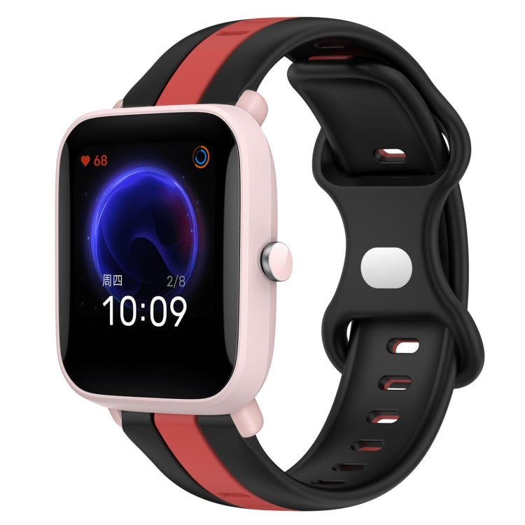 Correa de Reloj Amazfit Pop 20mm Silicona Hebilla de Mariposa Dos Colores (Negro + Rojo)
