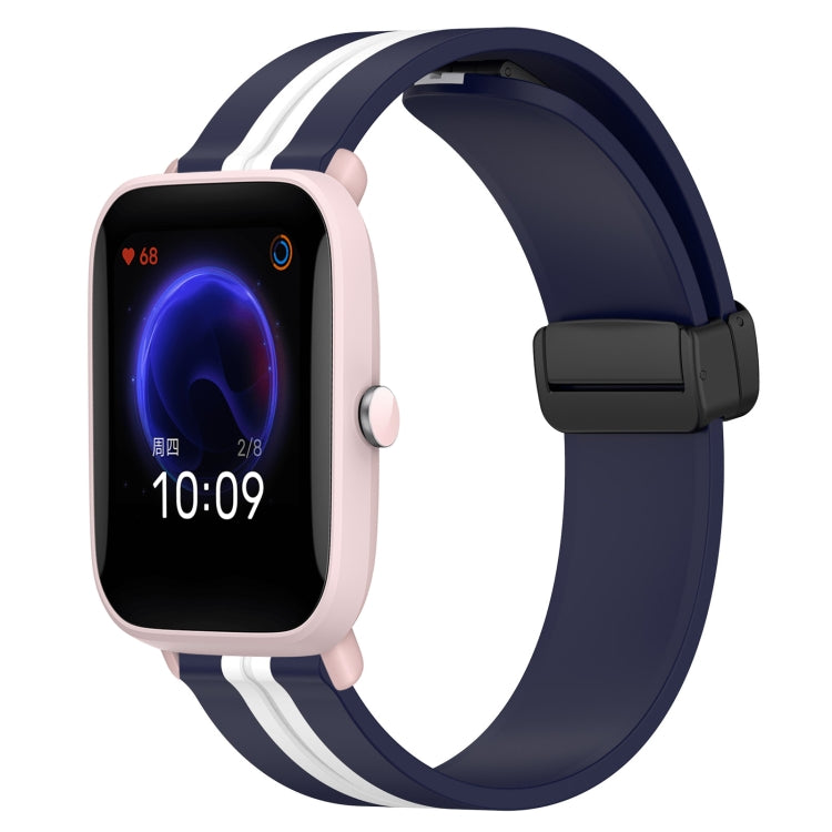 Correa de Reloj Amazfit Pop Pro 20mm Silicona con Cierre Magnético Plegable (Azul Medianoche + Blanco)