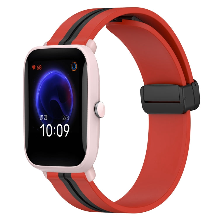 Correa de Reloj Silicona para Amazfit Pop Pro 20mm con Cierre Magnético Plegable (Rojo + Negro)