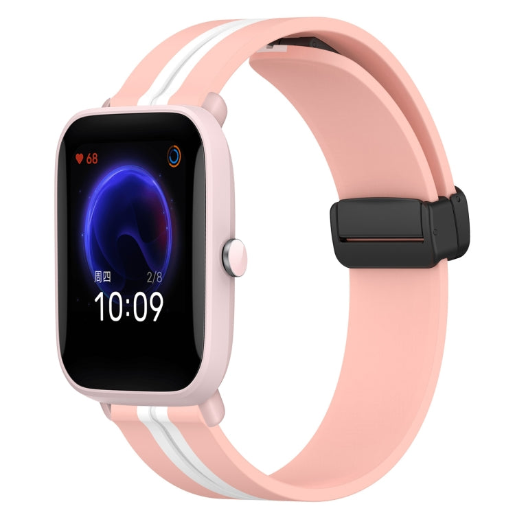 Correa de Reloj Amazfit Pop Pro 20mm Silicona con Cierre Magnético Plegable (Rosa + Blanco)
