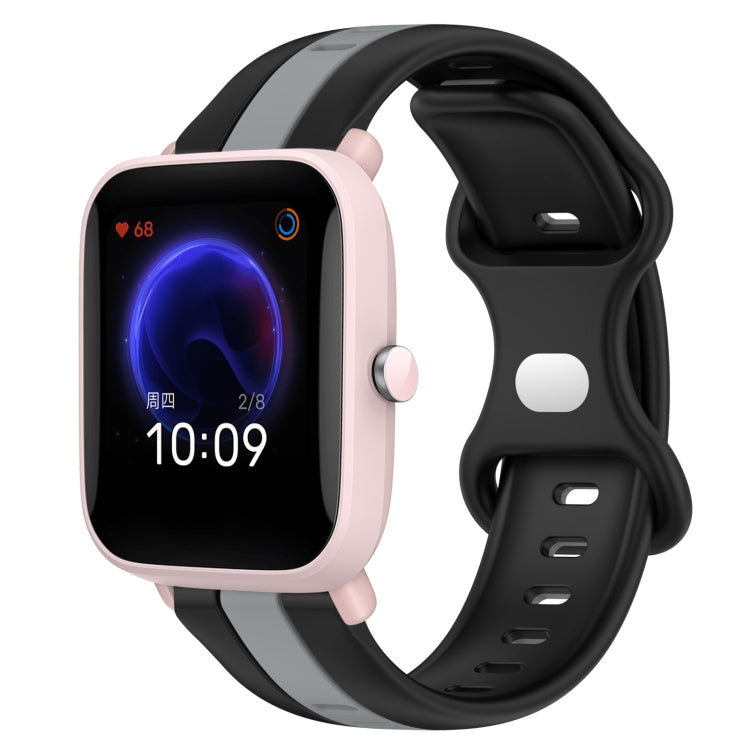 Correa de Reloj Amazfit Pop Pro 20mm silicona doble color con hebilla de mariposa (Negro + Gris)