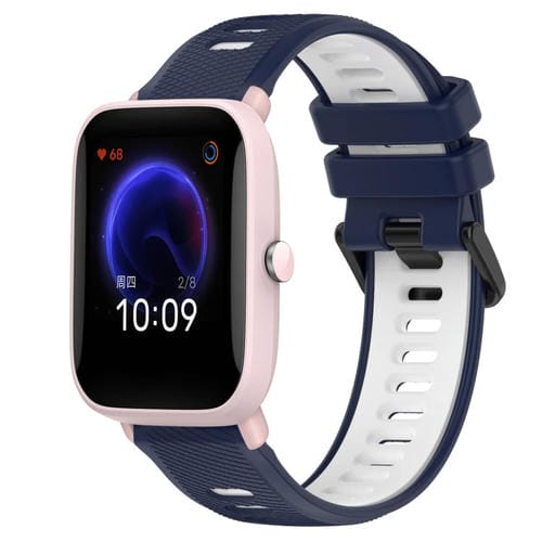 Correa deportiva silicona 20mm para Amazfit Pop Pro (Azul Medianoche + Blanco)