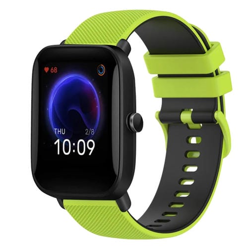 Correa de Reloj para Amazfit Pop Pro Silicona Dos Colores Cuadros 20mm (Verde Lima + Negro)
