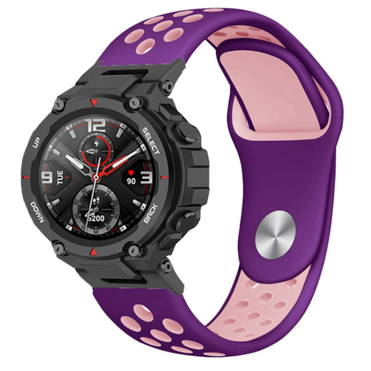 Banda de Reloj Silicona para Amazfit T-Rex 2 con 2 Agujeros y Hebilla Inversa (Púrpura Rosa)