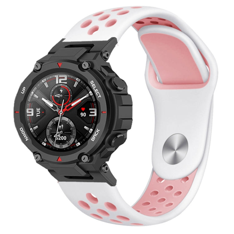 Correa de Reloj para Amazfit T-Rex 2 con 2 agujeros, dos colores y hebilla inversa de silicona (Rosa Blanco)