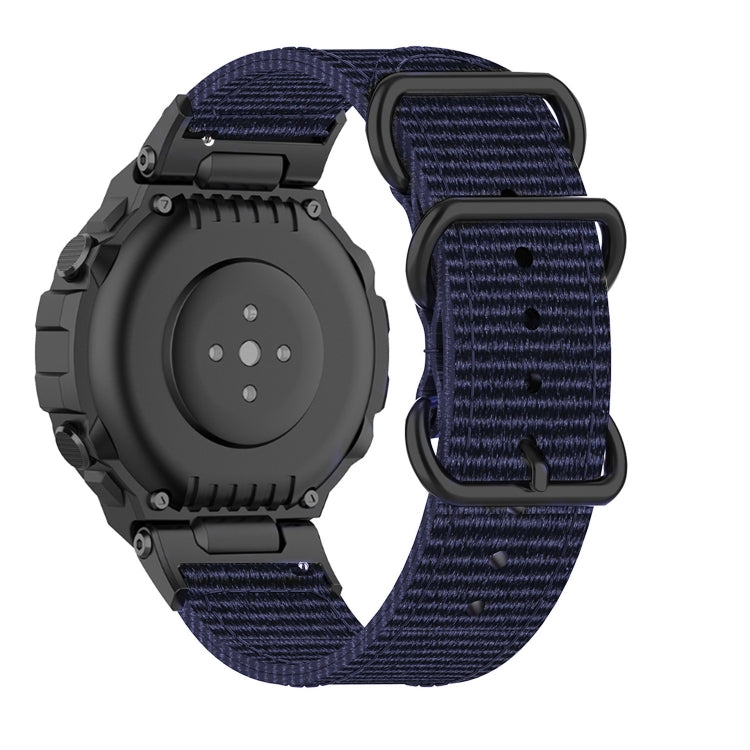 Correa de Reloj Nailon para Amazfit T-Rex T-Rex Pro Ares con Hebilla Negra y Tres Anillos (Azul)