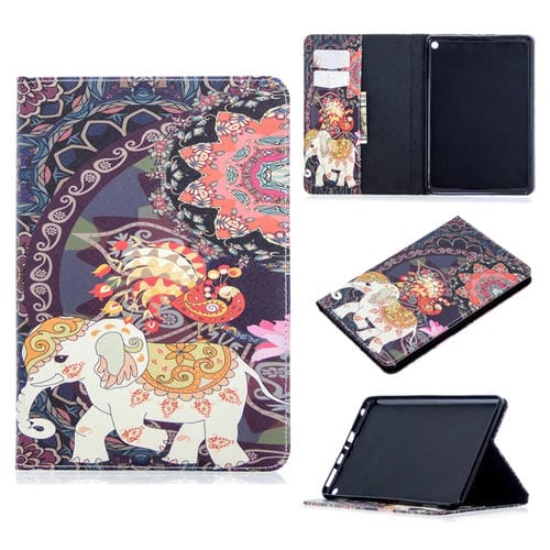 Funda de Cuero para Amazon Kindle Fire HD8 (2020) con Soporte, Ranuras para Tarjetas y Billetera (Elefante de Flores)