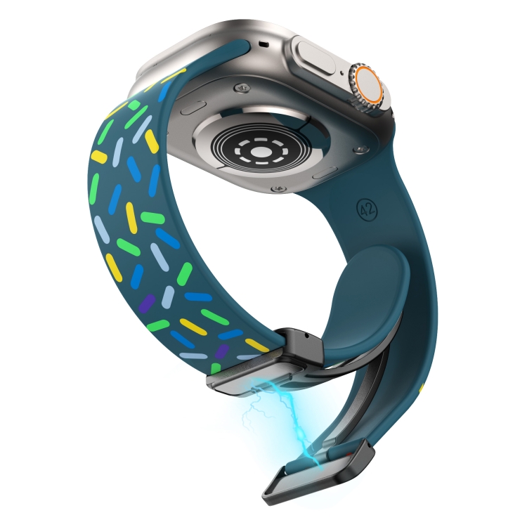 Para Apple Watch 3 38mm Rainbow Dots Silicona Magnética Negro Hebilla Correa de Reloj (Azul)
