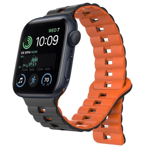 Correa para Apple Watch SE 2022 Silicona Magnética Dos Colores Hebilla Inversa 40mm (Negro + Naranja)