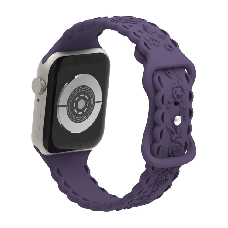 Correa de Silicona para Apple Watch Se 2023 44mm con Relieve de Rosa 3D (Cereza Carmesí)