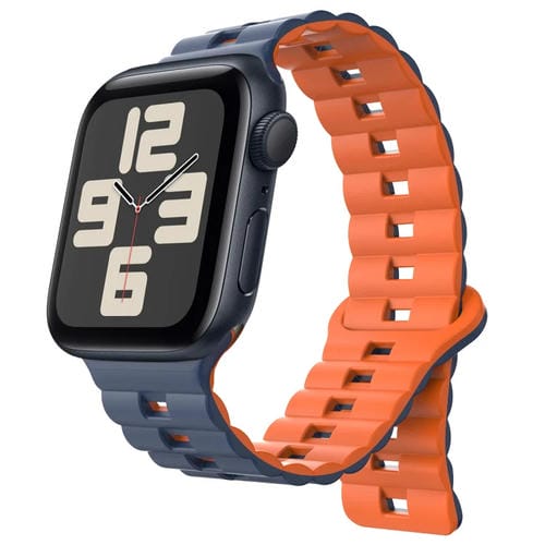 Correa de Silicona Magnética para Apple Watch Se 2023 44mm (Azul Medianoche + Naranja)