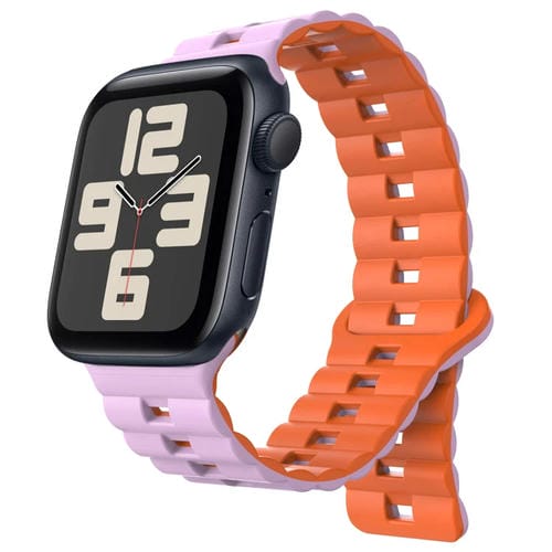 Correa de Silicona Magnética para Apple Watch Se 2023 44mm (Púrpura + Naranja)