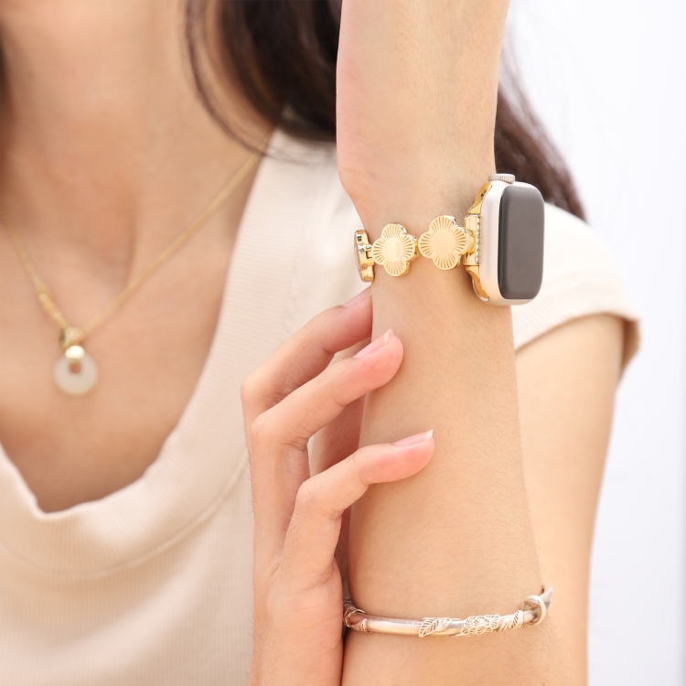 Correa para Apple Watch Series 3 38mm Cadena de Metal Liberación Rápida Trébol (Dorado)