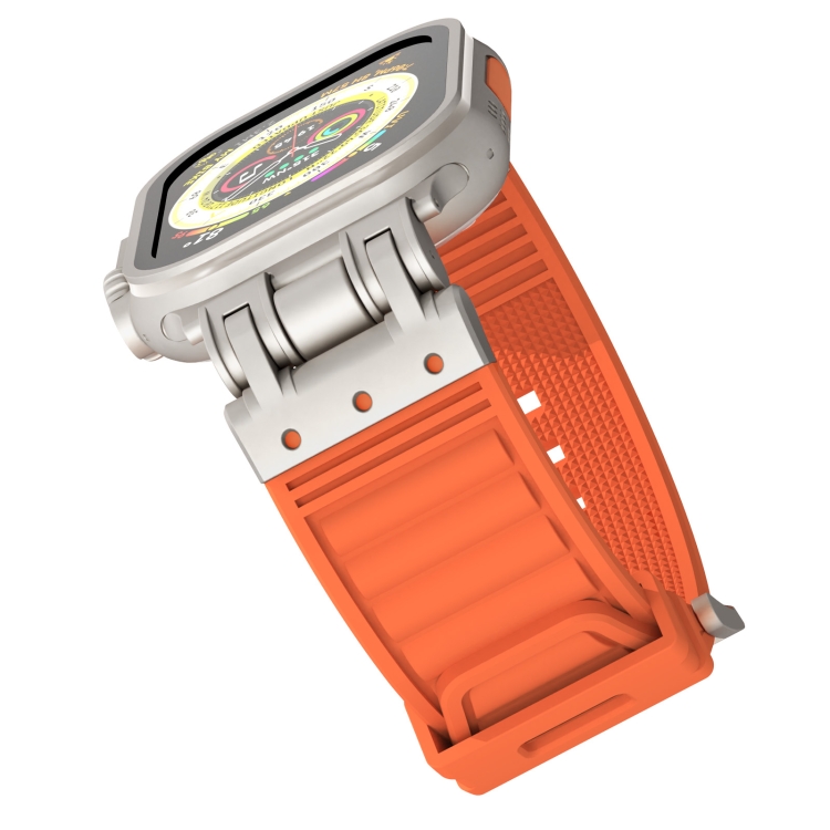 Correa de Silicona para Apple Watch Series 3 42mm a Cuadros Mecha de Metal (Naranja)