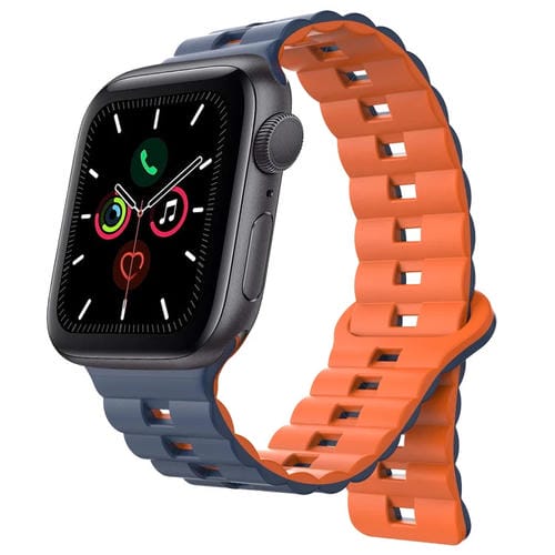 Correa de Silicona Magnética para Apple Watch Series 5 44mm (Azul Medianoche + Naranja)
