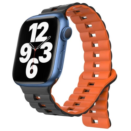 Correa de Silicona Magnética para Apple Watch Series 7 45mm (Negro + Naranja)