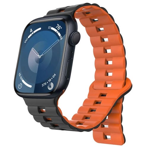 Correa para Apple Watch Series 9 de Silicona Magnética Dos Colores con Hebilla Inversa 41mm (Negro + Naranja)