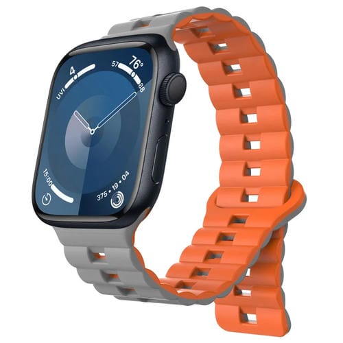 Correa para Apple Watch Series 9 45mm Silicona Magnética Dos Colores con Hebilla Inversa (Gris + Naranja)
