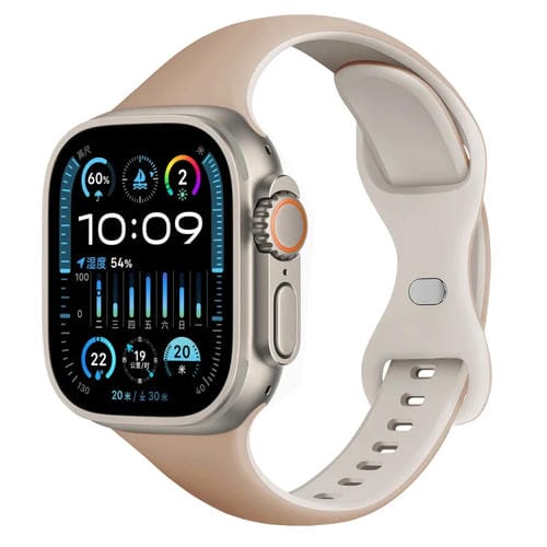 Correa de Silicona para Apple Watch Ultra 2 49mm con Hebilla de Mariposa Delgada Dos Colores (Té con Leche, Blanco Roca)