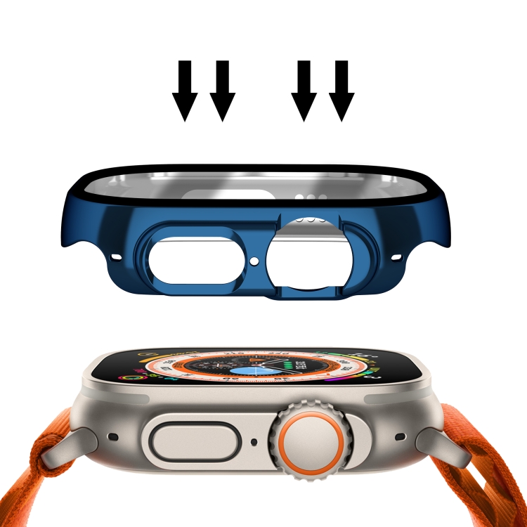 Caja de Reloj para Apple Watch Ultra 49mm con Recubrimiento Brillo y Vidrio Templado (Azul Oscuro)