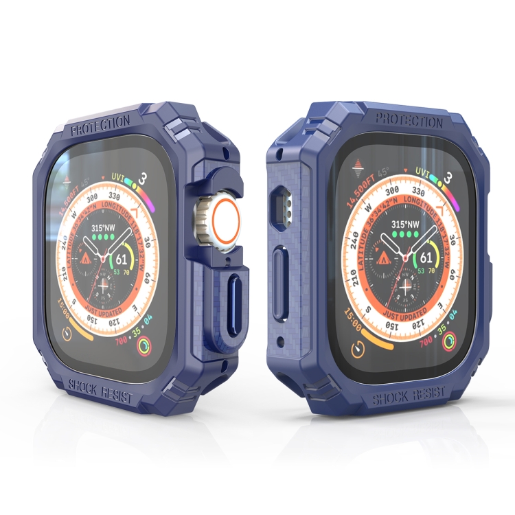Estuche para Apple Watch Ultra 49mm TPU + PC a Prueba de Golpes Fibra de Carbono (Azul)