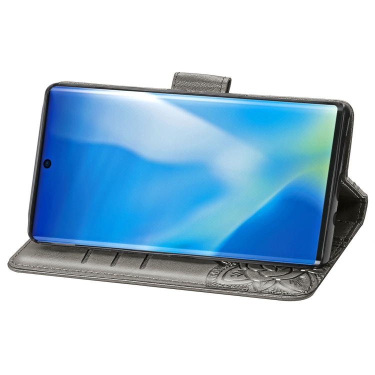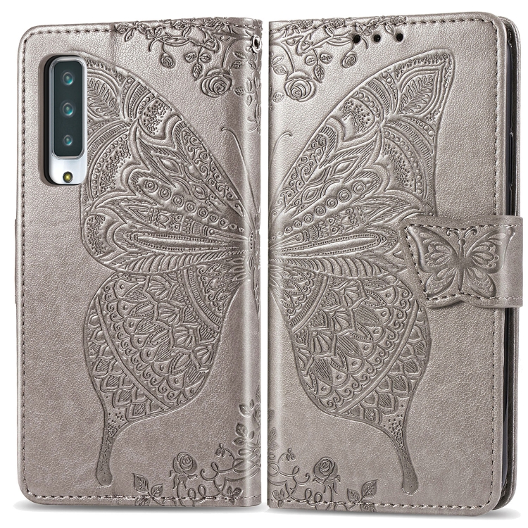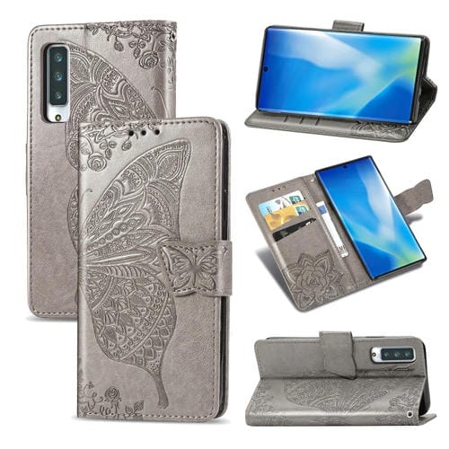 Funda de cuero para Arrows Nx9 F-52A Butterfly Love Flower con tapa horizontal, soporte, ranura para tarjeta y cordón (Gris)