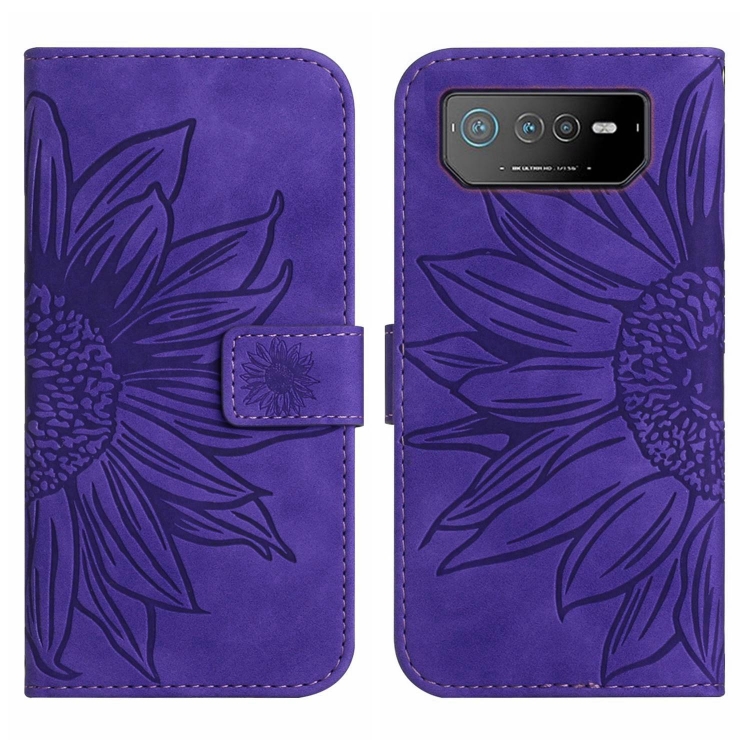 Funda de Cuero con Tapa y Cordón para Asus Rog Phone 6 Skin Feel Sun Flower (Púrpura Oscuro)