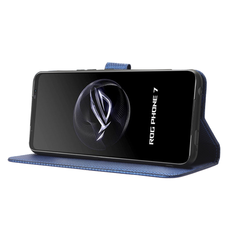 Caja de Teléfono de Cuero para Asus Rog Phone 7 con Textura de Diamante (Azul)