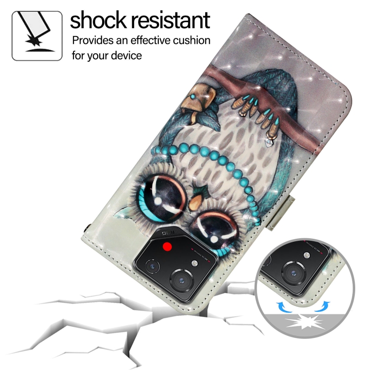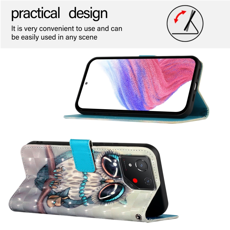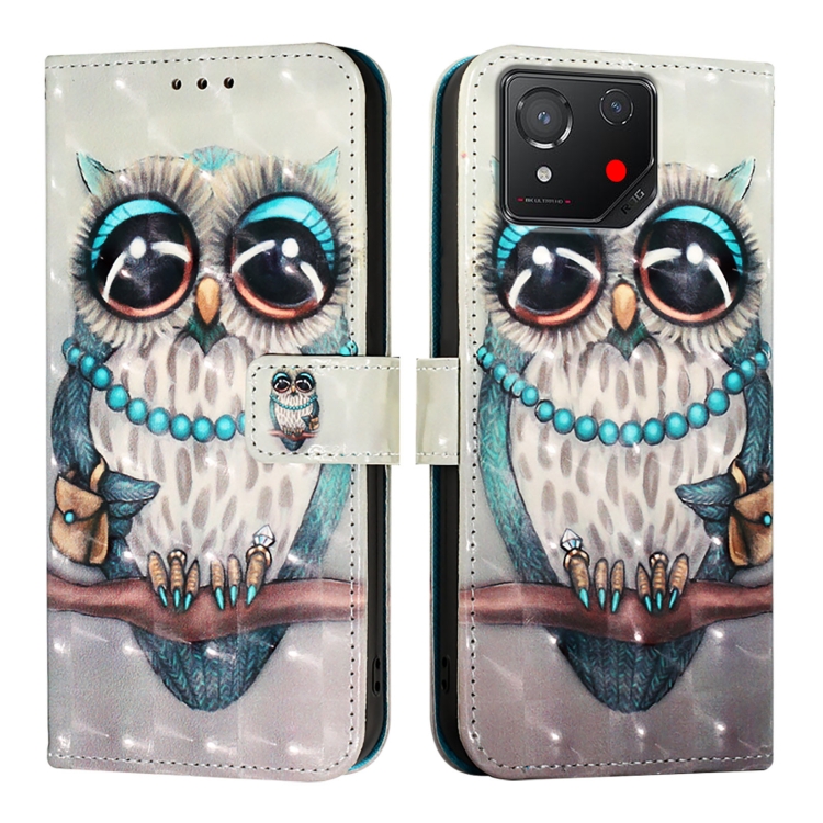 Funda para Asus Rog Phone 8 de Cuero con Tapa Horizontal y Pintura 3D (Búho Gris)