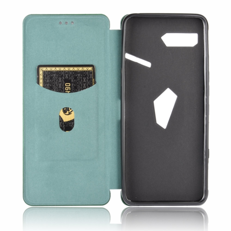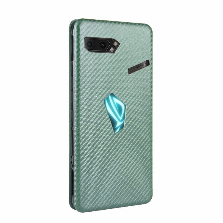 Funda para Asus Rog Phone II Textura Fibra de Carbono Flip Horizontal Magnético TPU + PC Cuero PU Ranura Tarjeta (Verde)