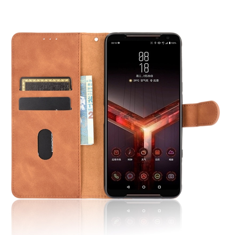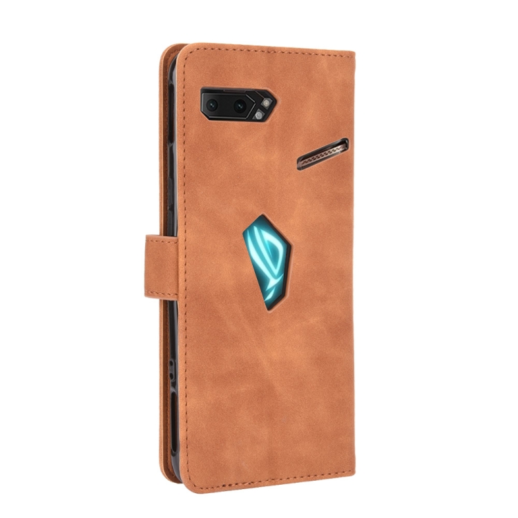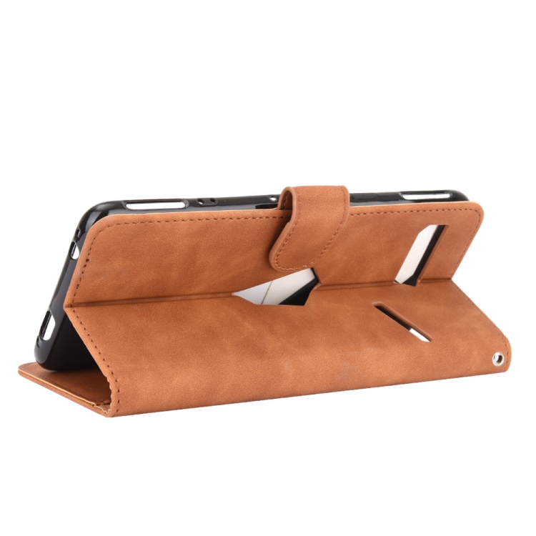 Funda Cuero PU para Asus Rog Phone II ZS660KL con Soporte, Ranuras para Tarjetas y Billetera (Marrón)