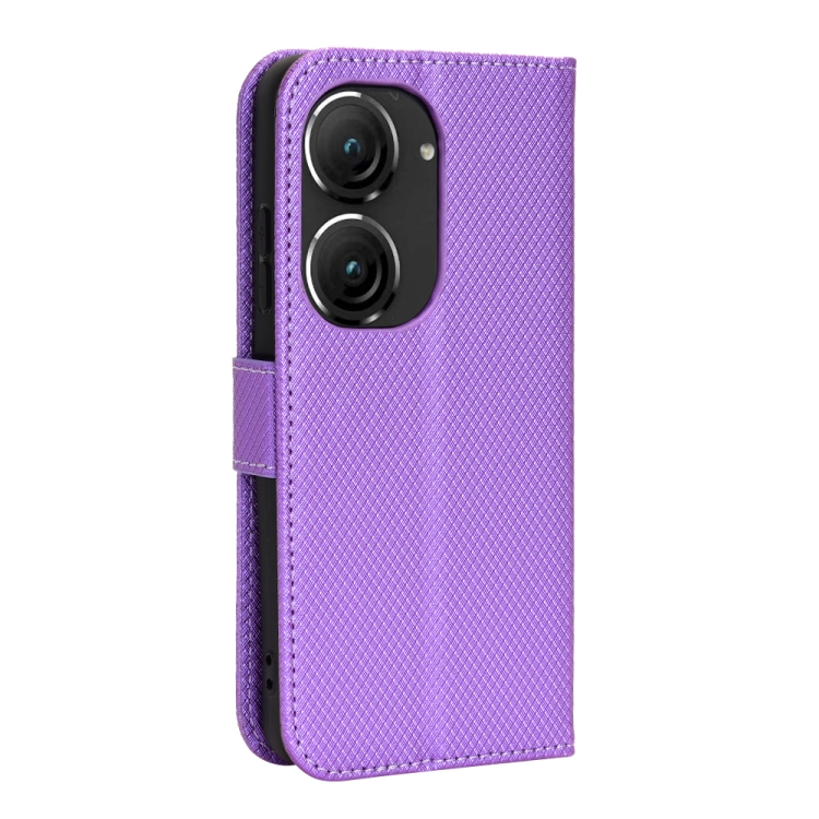 Caja de Teléfono de Cuero para Asus Zenfone 10 y 9 con Textura de Diamante (Púrpura)