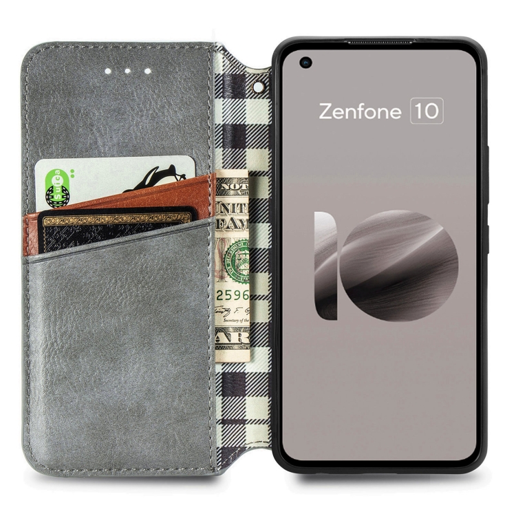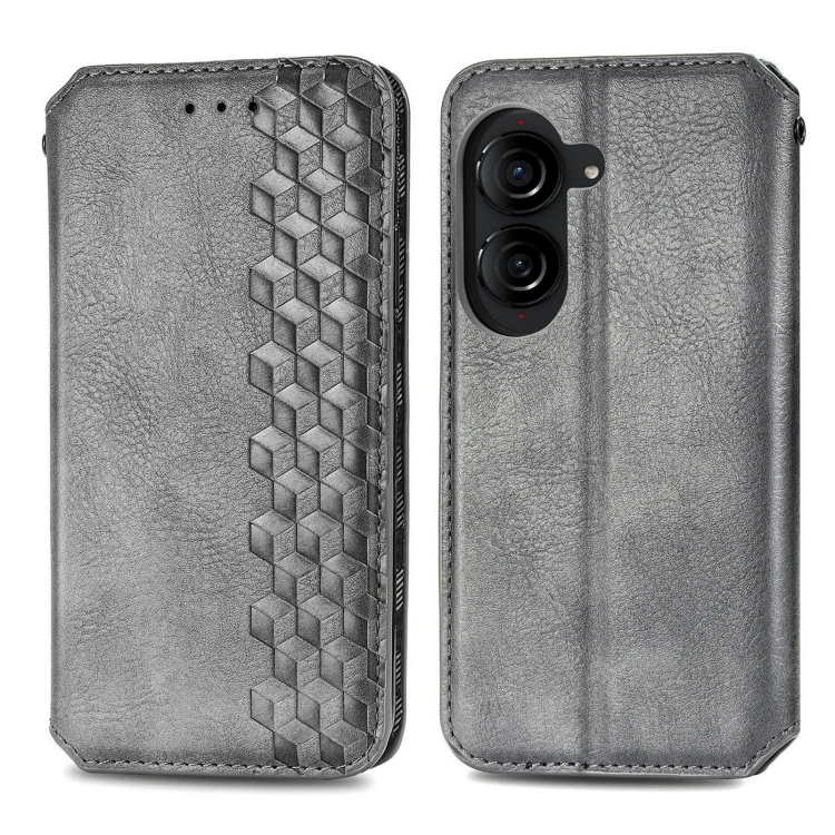 Funda de Cuero Magnético Prensado para Asus Zenfone 10 Cubic Grid (Gris)