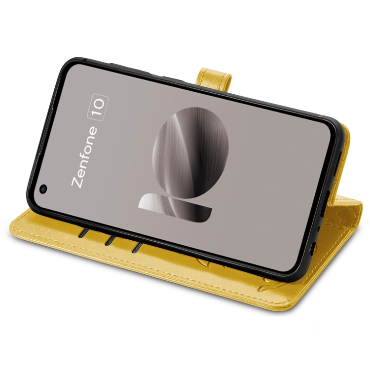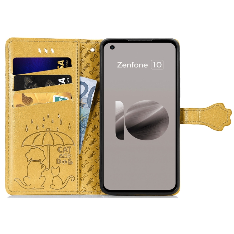 Funda para Asus Zenfone 10 de Cuero con Relieve de Gato y Perro (Amarillo)