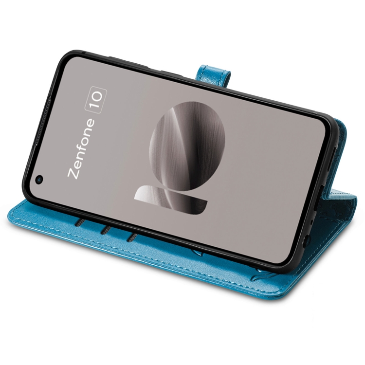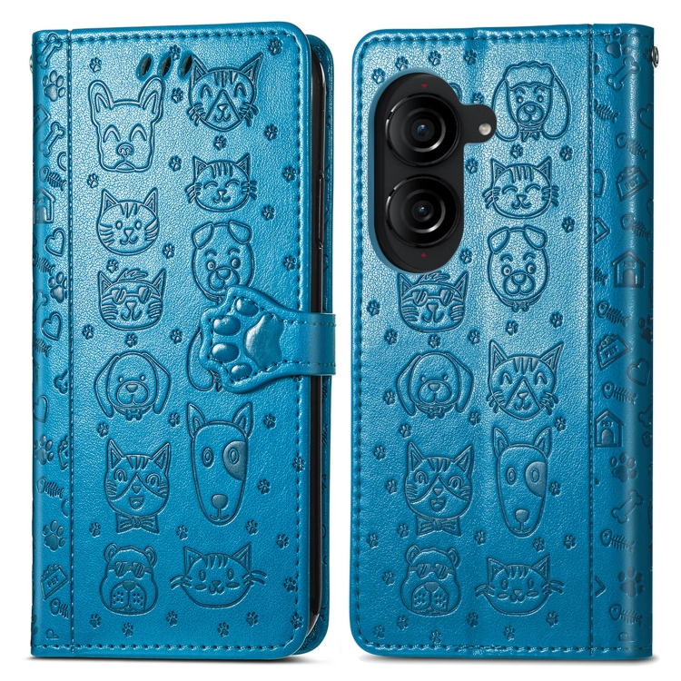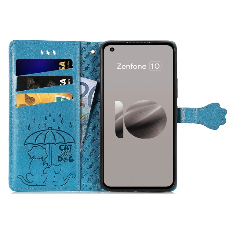 Funda para Asus Zenfone 10 de Cuero con Relieve de Gato y Perro (Azul)