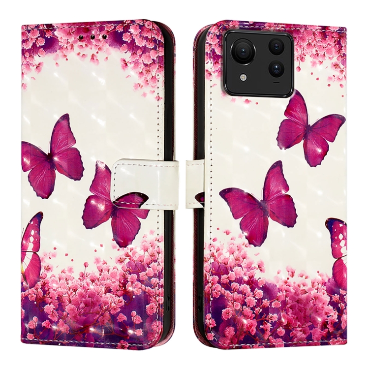 Funda para Asus Zenfone 11 Ultra de Cuero con Tapa Horizontal y Pintura 3D (Mariposa Rosa)