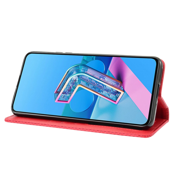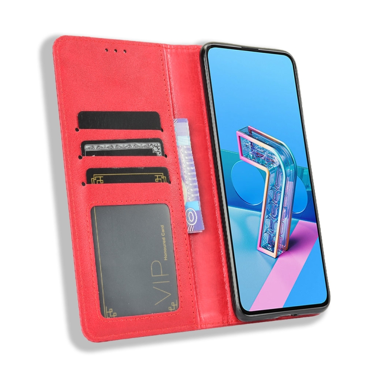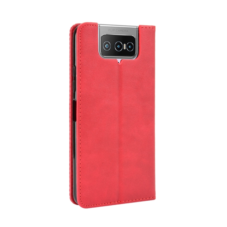Funda de Cuero para Asus Zenfone 7 Zs670Ks y Zenfone 7 Pro Zs671Ks con Hebilla Magnética, Soporte, Ranuras y Marco (Rojo)