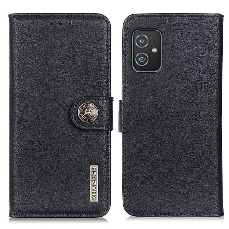 Funda Asus Zenfone 8 Khazneh Cowhide Textura Horizontal Flip con Ranuras para Tarjetas y Billetera (Negro)