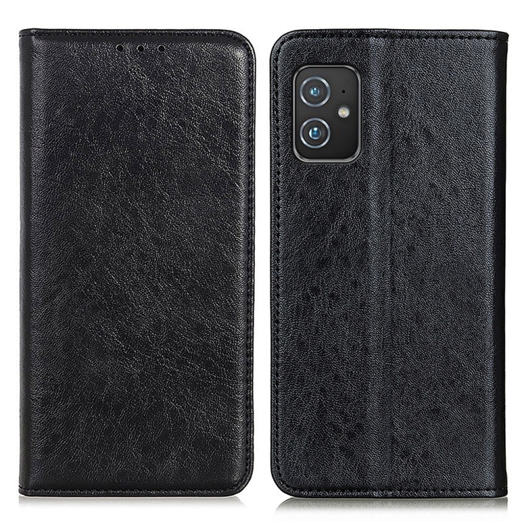 Funda de Cuero Magnética para Asus Zenfone 8 Crazy Horse Textura Horizontal con Soporte y Tarjetero (Negro)