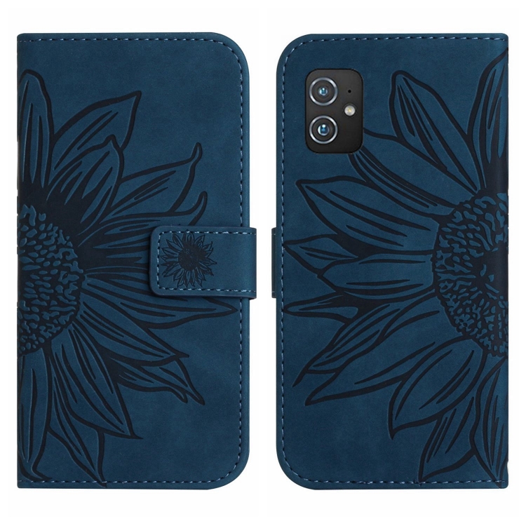 Funda de Cuero con Tapa y Cordón para Asus Zenfone 8 Zs590Ks Skin Feel Sun Flower Pattern (Azul Tinta)