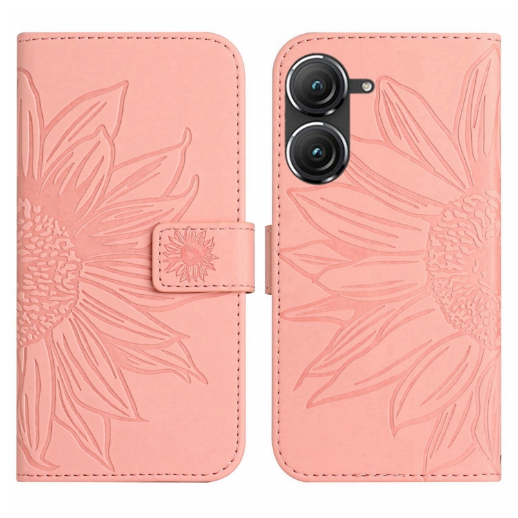 Funda de Cuero Flip para Asus Zenfone 9 con Cordón y Diseño Sun Flower (Rosa)