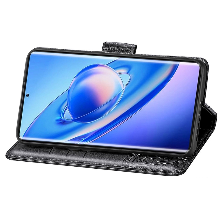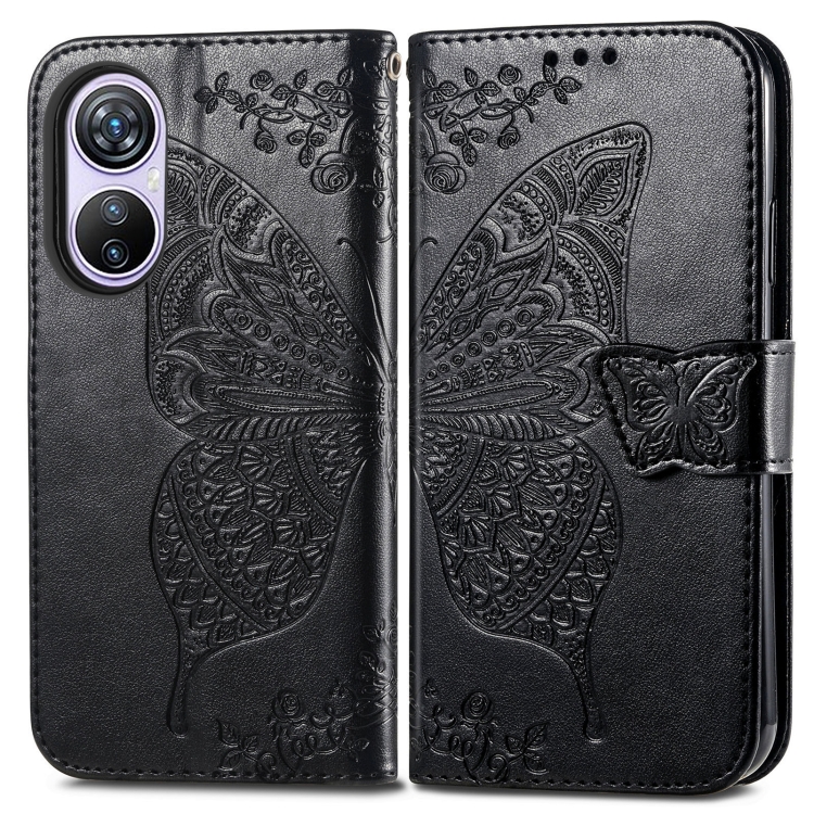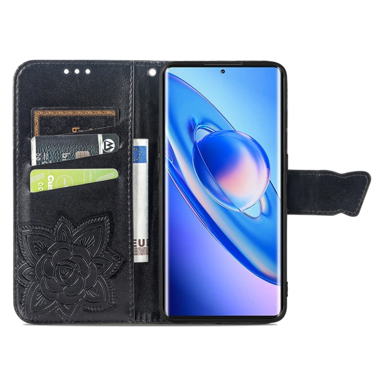 Funda de Cuero para BlackView A200 Pro Butterfly Love Flower en Relieve (Negro)