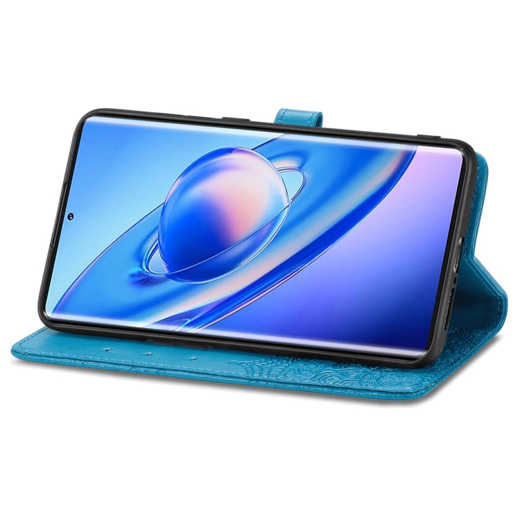 Funda de Cuero para BlackView A200 Pro con Relieve de Flores Mandala (Azul)