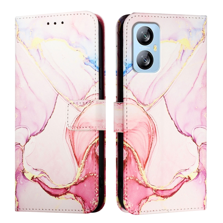 Funda de Cuero con Tapa para BlackView A52 Pt003 con Patrón de Mármol (Oro Rosa)