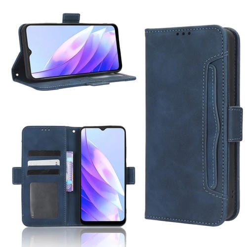 Funda de Cuero para BlackView A52 con Textura Becerro y Ranuras para Tarjetas (Azul)