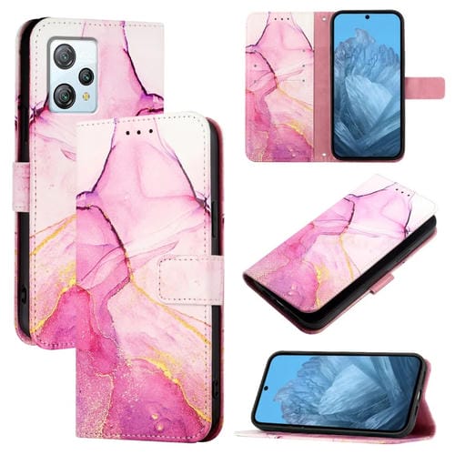 Funda de Cuero con Tapa para BlackView A53 Pt003 con Patrón de Mármol (Rosa, Morado y Dorado)