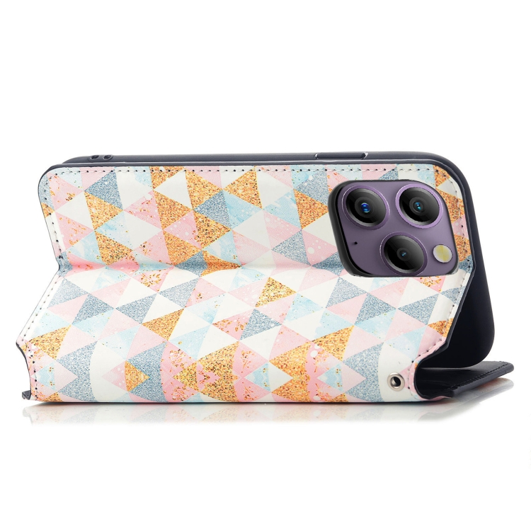 Estuche de Cuero Magnético Caseneo para BlackView A96 con Diseño Rombo Colorido