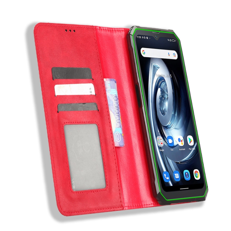 Funda de Cuero con Hebilla Magnética para BlackView Bv7100 Textura Retro (Rojo)
